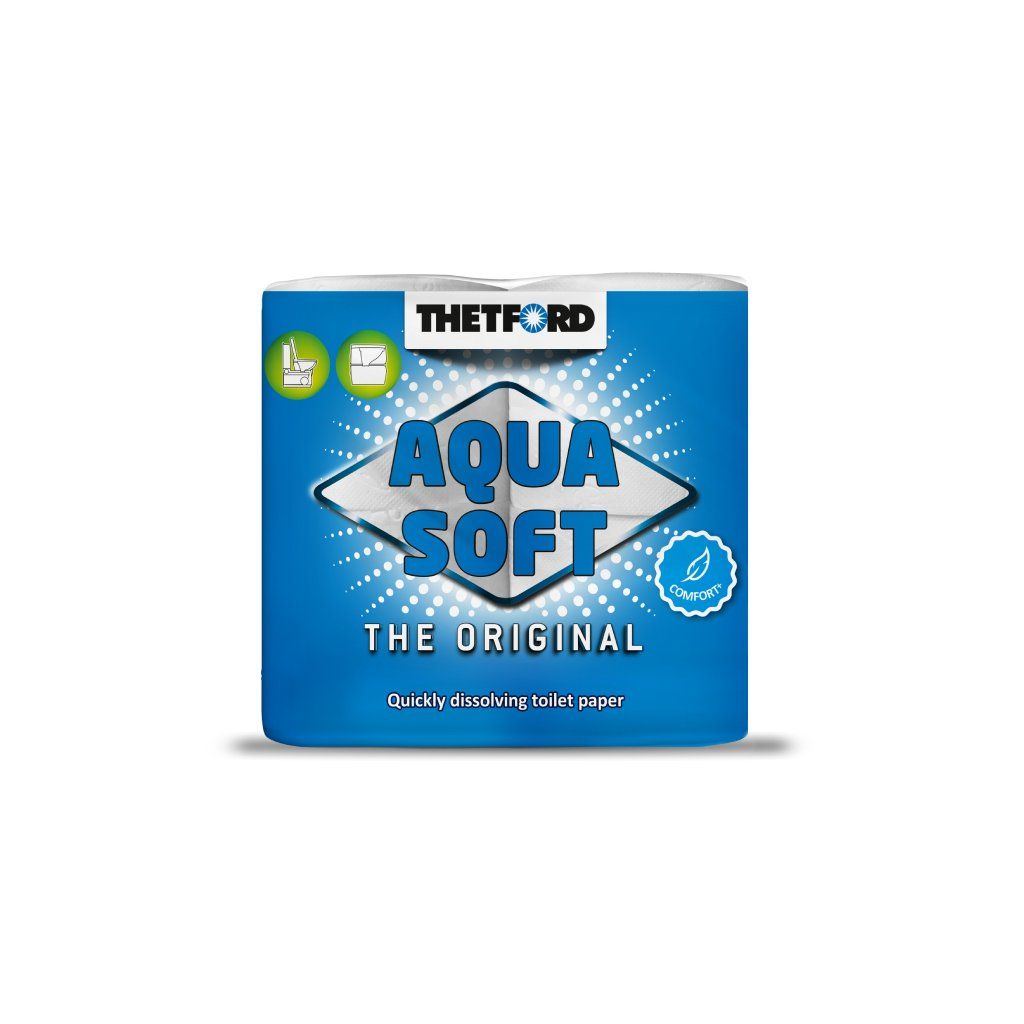 Thetford Aqua Soft je speciální rozkladový toaletní papír určený pro chemická WC. Oproti běžnému domácímu papíru se v odpadní nádrži rychleji rozpadá, čímž pomáhá předcházet zanášení systému a usnadňuje vyprazdňování fekální nádrže. Zároveň zůstává dostatečně komfortní pro běžné používání.