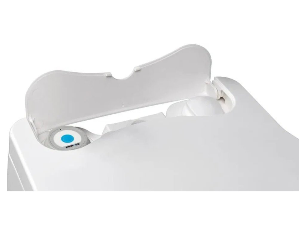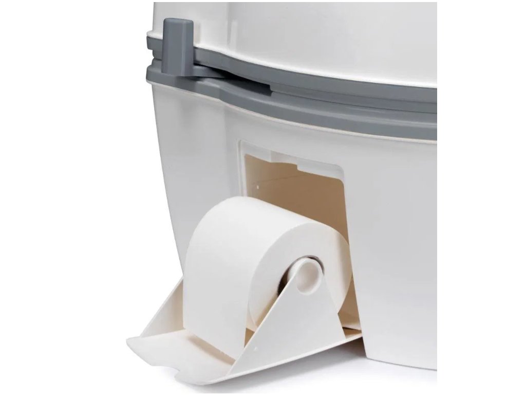 Pro zajištění vysokého komfortu je součástí modelu Porta Potti 565E i praktický držák toaletního papíru. Tento doplněk vám usnadní každodenní používání toalety, protože papír budete mít vždy po ruce a snadno přístupný. Držák je designově sladěn s celkovým vzhledem toalety a zajišťuje pohodlí při každém použití.