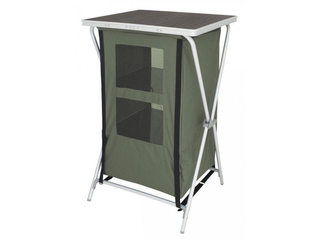 Skříňka nabízí dostatek prostoru pro ukládání nádobí, potravin a dalších kempingových potřeb, přičemž zipová dvířka chrání obsah před prachem a vlhkostí. Zadní ventilační síťka umožňuje cirkulaci vzduchu, čímž se minimalizuje riziko vlhkosti, zápachu nebo plísní.