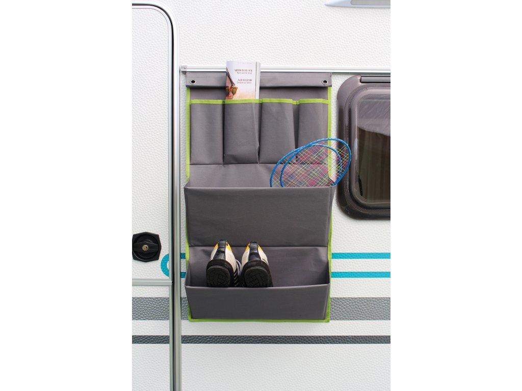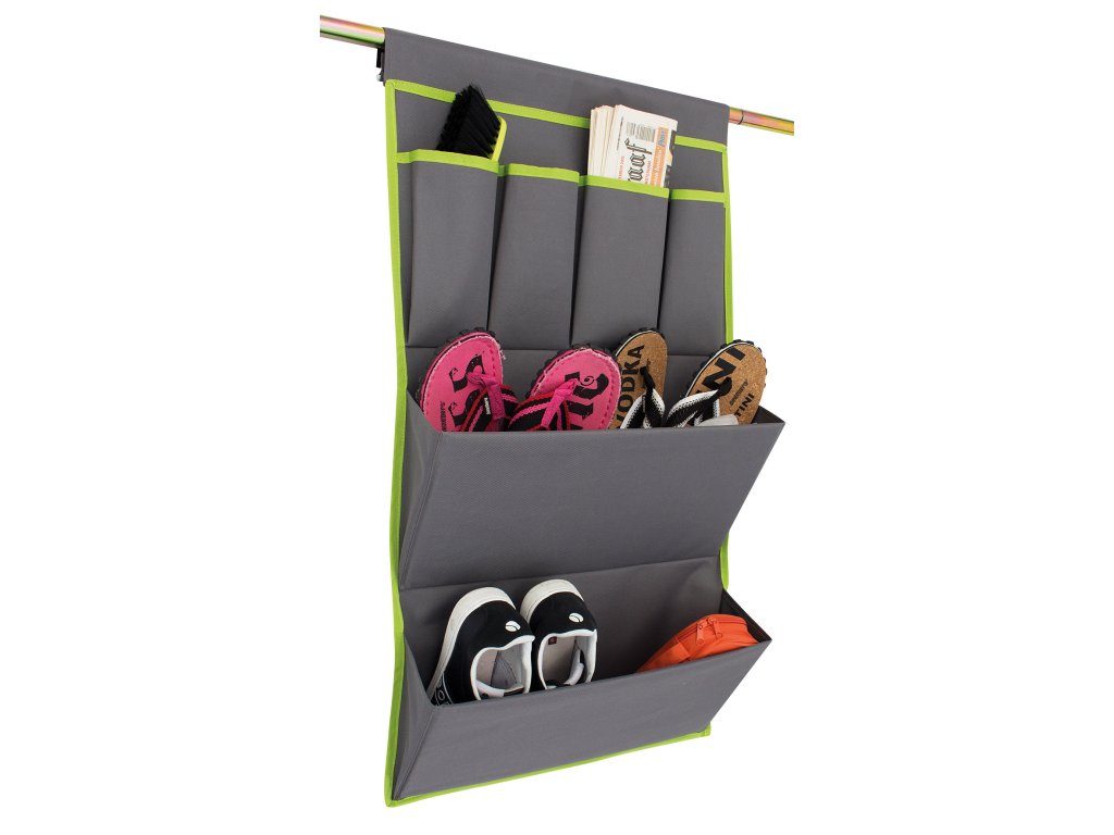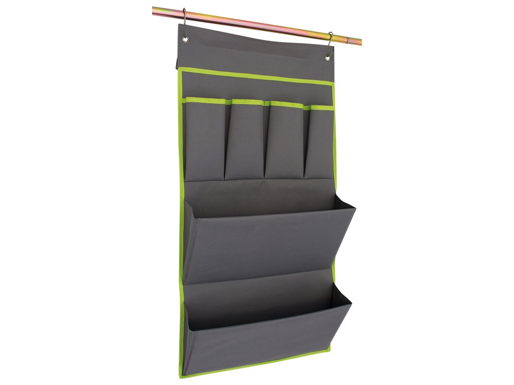 S rozměry 48 × 80 cm nabízí organizér dostatek úložného prostoru, aniž by zabíral zbytečně mnoho místa. K dispozici je v šedozelené barvě, která se snadno kombinují s různými styly interiérů a působí moderně a čistě.