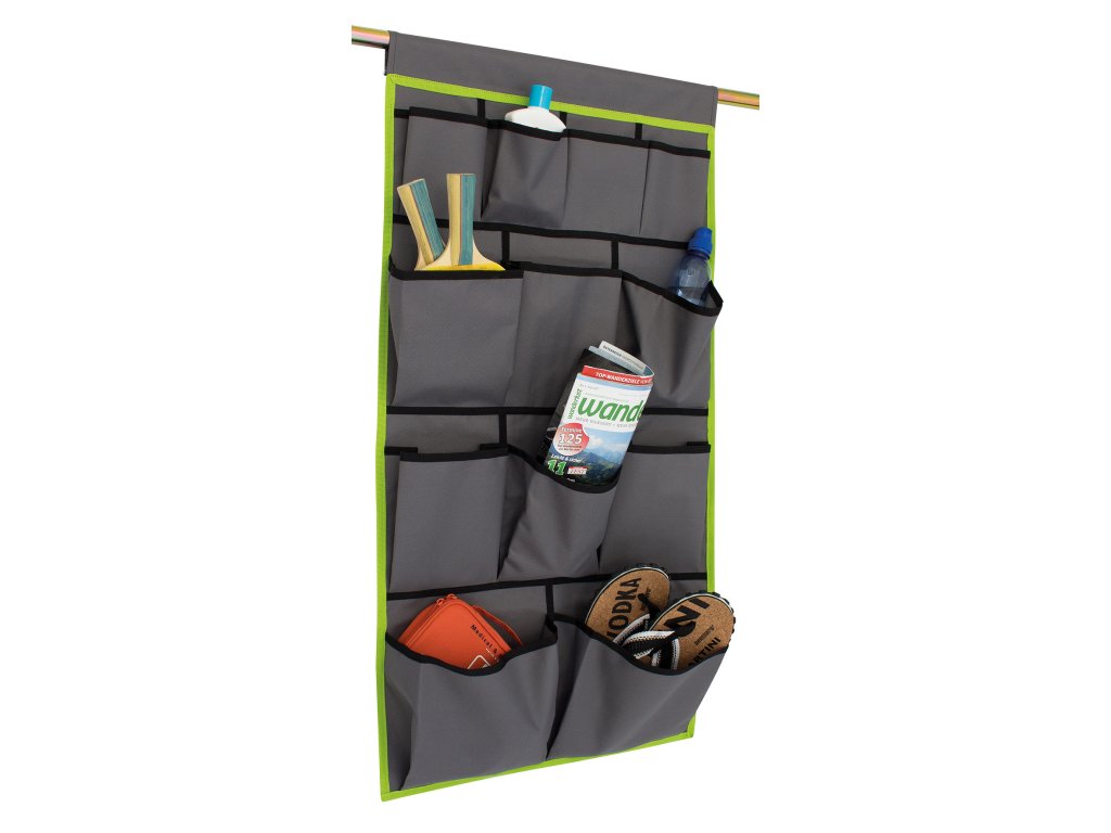 Organizér Derby L je vybaven 12 kapsami různých velikostí, které umožňují přehledné a flexibilní uspořádání všech uložených věcí. Větší kapsy jsou ideální pro oblečení, boty, ručníky nebo sportovní vybavení. Menší kapsy slouží k uložení drobností, jako jsou klíče, kosmetika, mobilní telefon, elektronika nebo kancelářské potřeby. Každá věc má své místo a je snadno dostupná.