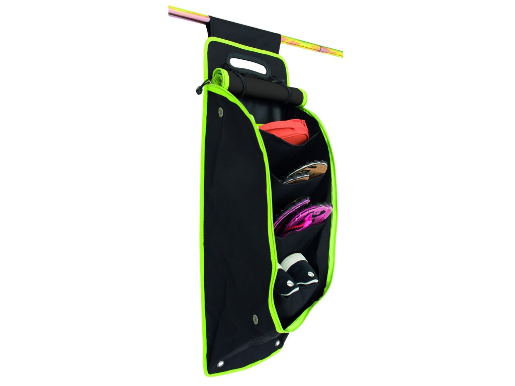 Organizér je vybaven 5 velkými kapsami a 1 kapsou ze síťoviny, což umožňuje přehledné uložení oblečení, obuvi a drobných předmětů. Síťovaná kapsa poskytuje ventilaci a snadný přístup k drobnostem, které chcete mít okamžitě po ruce.