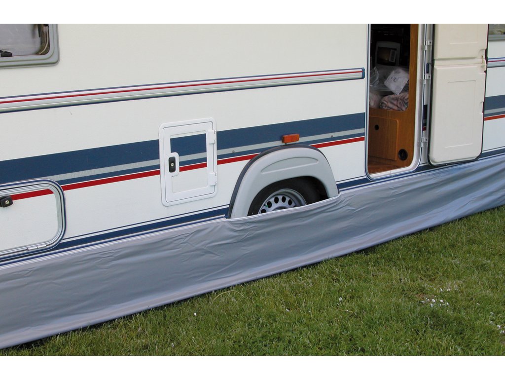 EUROTRAIL Protiprůvanová zástěna 400 cm je praktický a účinný doplněk pro majitele karavanů, kteří chtějí minimalizovat průvan pod přívěsem a zajistit tak vyšší tepelný komfort. Zástěna je navržena pro snadnou montáž do lišty s C-profilem na spodní hraně karavanu a poskytuje efektivní ochranu proti větru, chladu a nepříznivým povětrnostním podmínkám. Vyrobena z odolného materiálu polyester All Weather 1.7 a ve stylové šedé barvě, kombinuje praktičnost, dlouhou životnost a elegantní vzhled, který ladí s většinou karavanů.