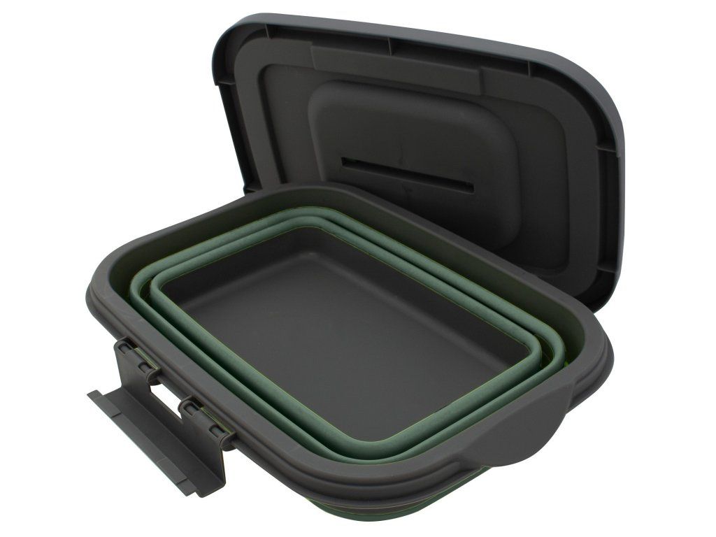 Koš lze po použití složit do plochého tvaru, takže zabírá jen minimum místa. To oceníte v karavanu, autě i menších domácnostech. Efektivní řešení pro omezený úložný prostor.