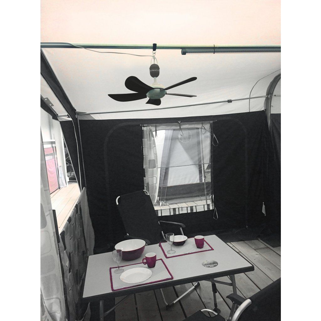 Ventilátor poskytuje vysoký průtok vzduchu, který rychle ochladí vnitřní prostor karavanu, stanu nebo přístřešku. To oceníte během horkých dnů, kdy je pobyt uvnitř komfortní a příjemný, aniž byste museli používat hlučné přístroje.