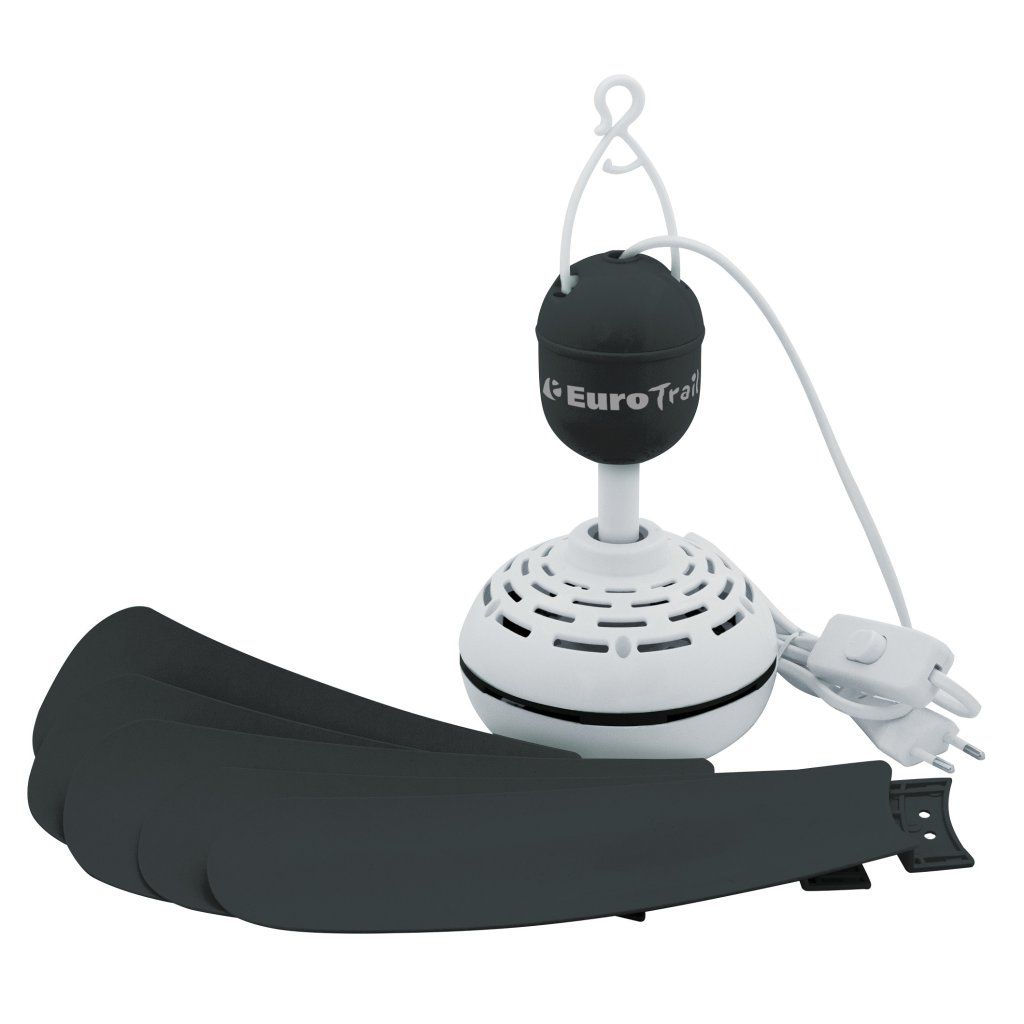 EUROTRAIL Stropní ventilátor 230V je ideální pro kempaře a cestovatele, kteří chtějí tichý, efektivní a kompaktní ventilátor. Snadno se zavěsí, složí pro transport a poskytuje příjemné ochlazení a cirkulaci vzduchu i při horkých letních dnech.