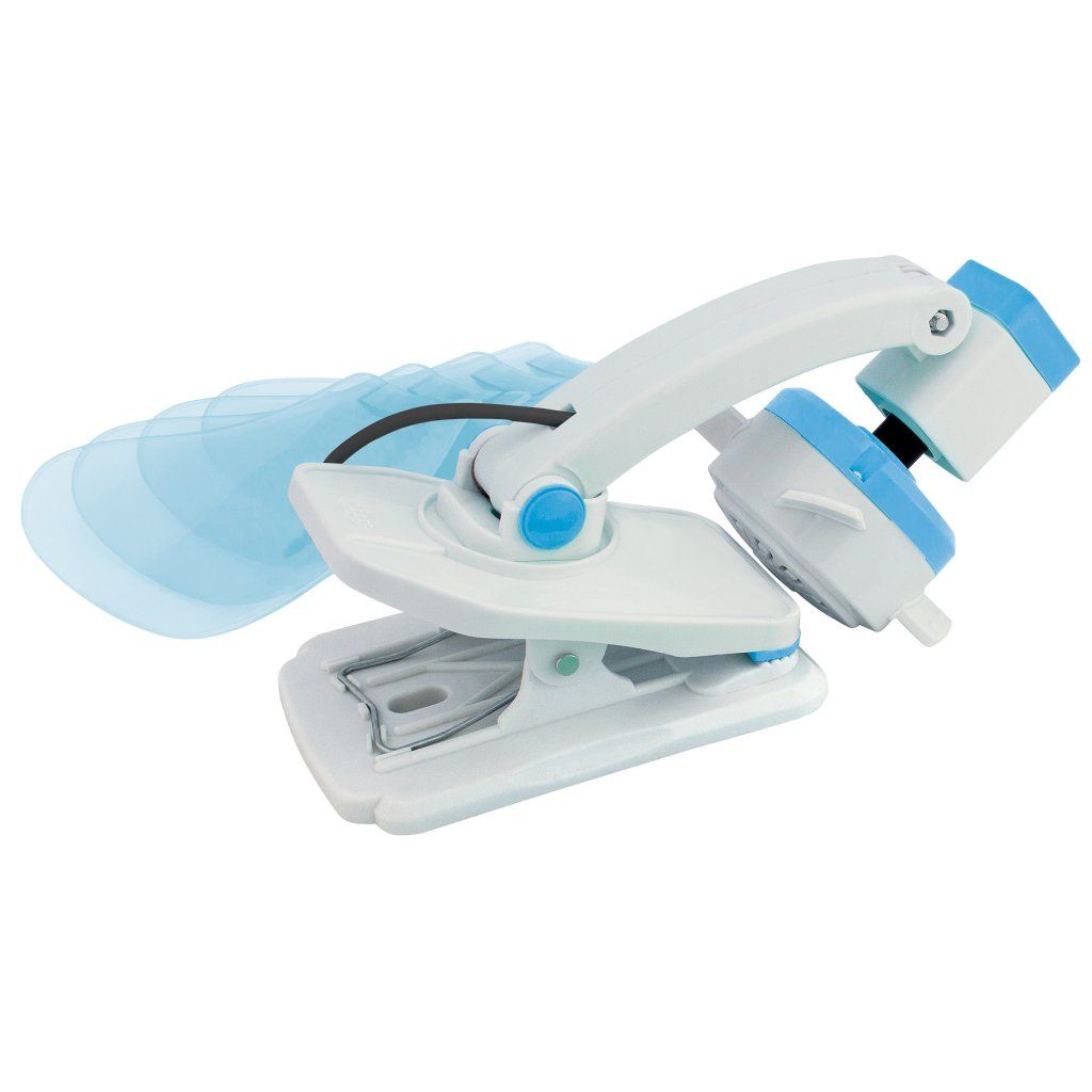 Svorka umožňuje snadné upevnění na stůl, stanovou tyč nebo jiný povrch. Naklápěcí konstrukce vám umožní přizpůsobit směr proudění vzduchu přesně podle potřeby, ať už potřebujete ochladit pracovní prostor nebo místo pro odpočinek.