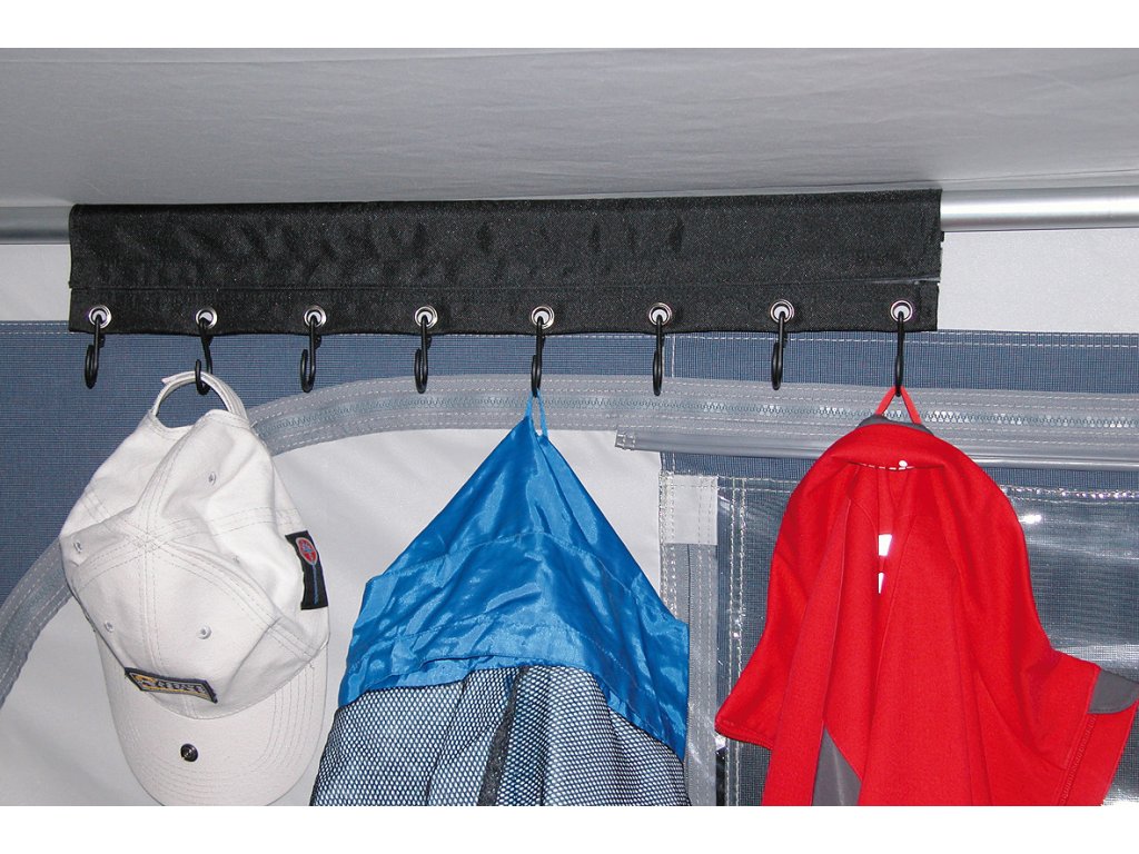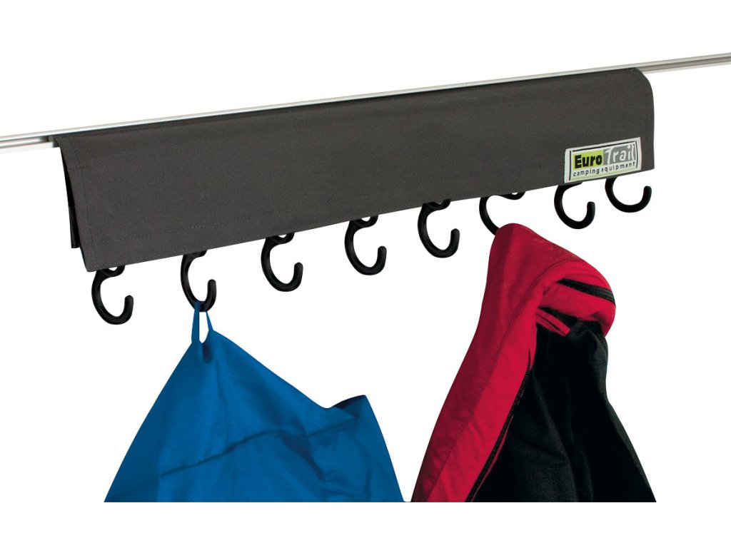 EUROTRAIL Věšák na kabáty je univerzální a praktický pomocník pro udržení pořádku v karavanu, stanu, předstanu i domácnosti. Nabízí 8 háčků, snadnou montáž pomocí polyesterové manžety nebo do C-profilu, odolný materiál a kompaktní rozměry. Ideální řešení pro přehledné zavěšení oblečení, ručníků i vybavení bez zbytečného zabírání místa.