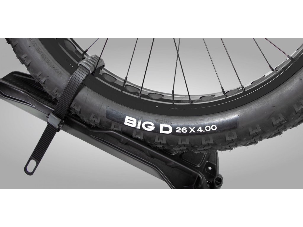 Držáky kol jsou vybaveny dostatečně dlouhými upínacími popruhy, aby bezpečně obepnuly široké ráfky. Držáky kol pojmou jakýkoliv typ pneumatik. Pro zabránění případným vibracím předního kola si můžete domontovat doplňkový upínací pás - Anti sway kit (volitelné příslušenství).