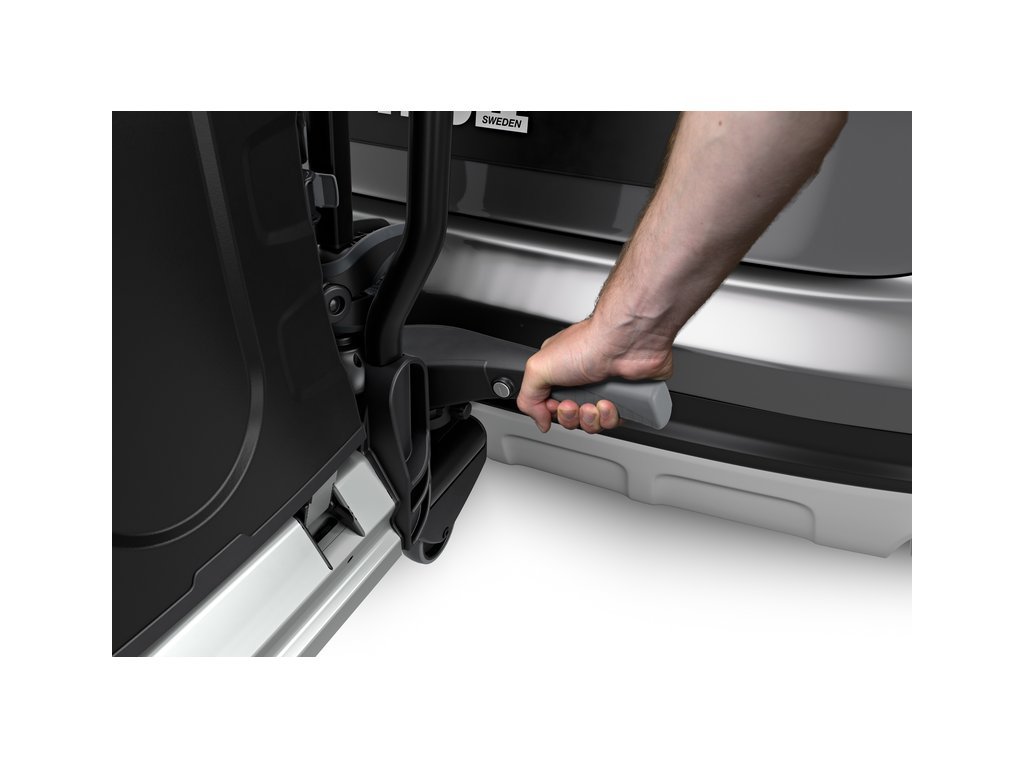 Jedinečnou vlastností nosiče kol Thule EasyFold XT 934 je, že jeho montáž a demontáž na tažnou kouli se může provádět ve složeném stavu, díky čemuž můžete přistoupit k nosiči mnohem pohodlněji zboku, místo zezadu.