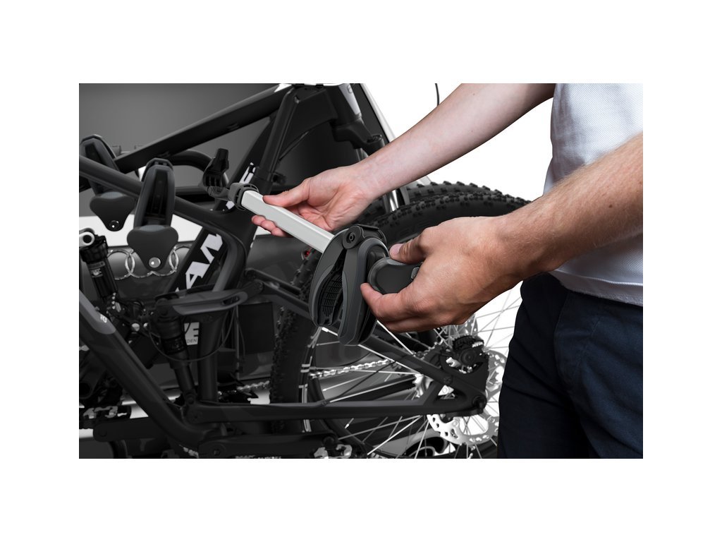 Pro zabezpečení jízdních kol máte k dispozici samostatné zámky na uzamčení jízdních kol k nosiči a také zámek na uzamčení nosiče k tažné kouli. Nastavitelné přezky s extra dlouhými popruhy umožňují pohodlné upevnění kol i s extra širokými pneumatikami (až 4.7palcovými). Ergonomické přenášení cyklonosiče díky integrované rukojeti na přenášení.