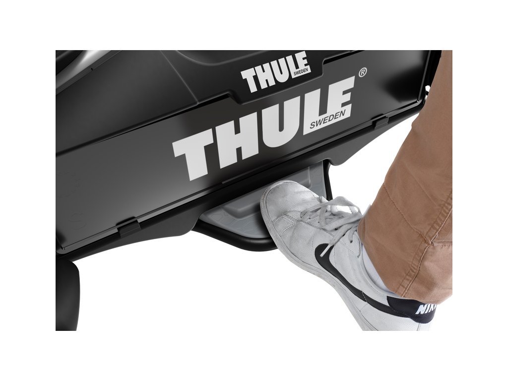 Výklopný mechanismus nosiče THULE VeloCompact 926 se ovládá pomocí inteligentního nožního pedálu, což Vám ponechá volné ruce na přidržení kol během vyklápění. Dostanete se tak bezproblémově k zavazadlovému prostoru i s koly namontovanými na nosiči.