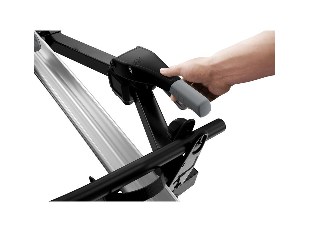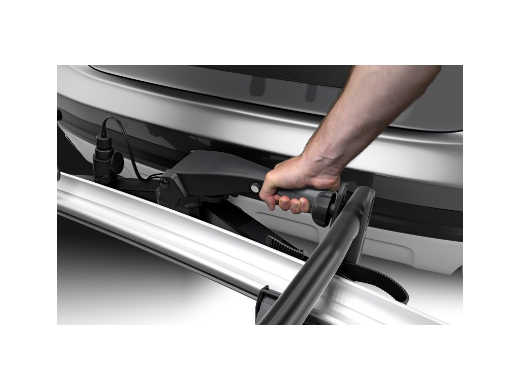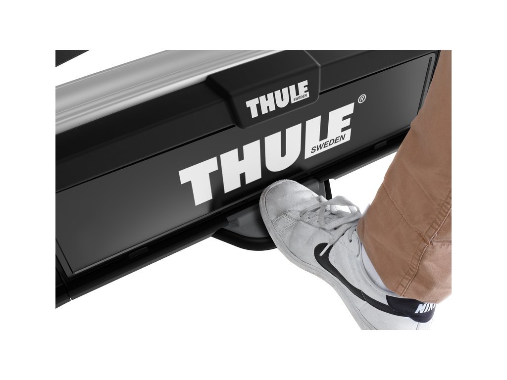 Výklopný mechanismus nosiče THULE VeloSpace se ovládá pomocí inteligentního nožního pedálu, což Vám ponechá volné ruce k přidržení jízdních kol během vyklápění. Dostanete se tak bezproblémově k zavazadlovému prostoru i s koly namontovanými na nosiči.