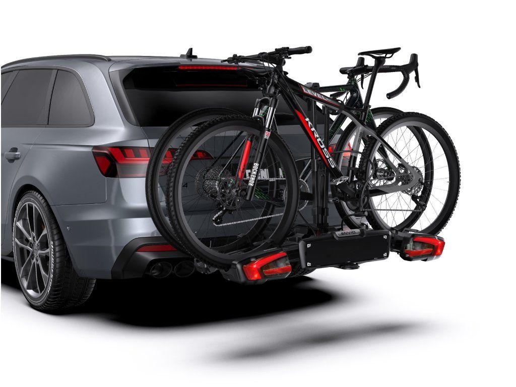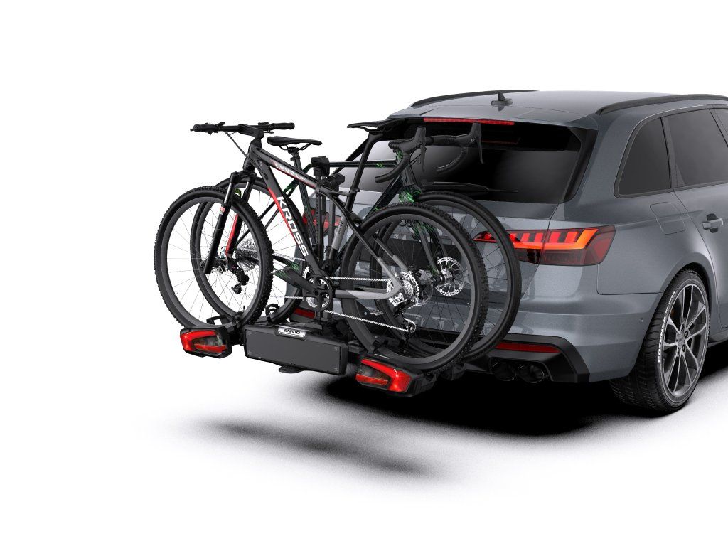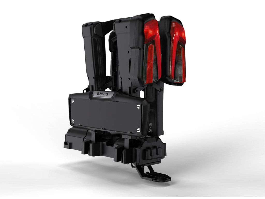 ENVIO eMAX 2 je robustní nosič kol na tažné zařízení pro 2 kola včetně elektrokol. Nabízí vysokou stabilitu, pevné uchycení a pohodlnou manipulaci při nakládání i používání. Díky sklopné konstrukci umožňuje pohodlný přístup do kufru i s naloženými koly.