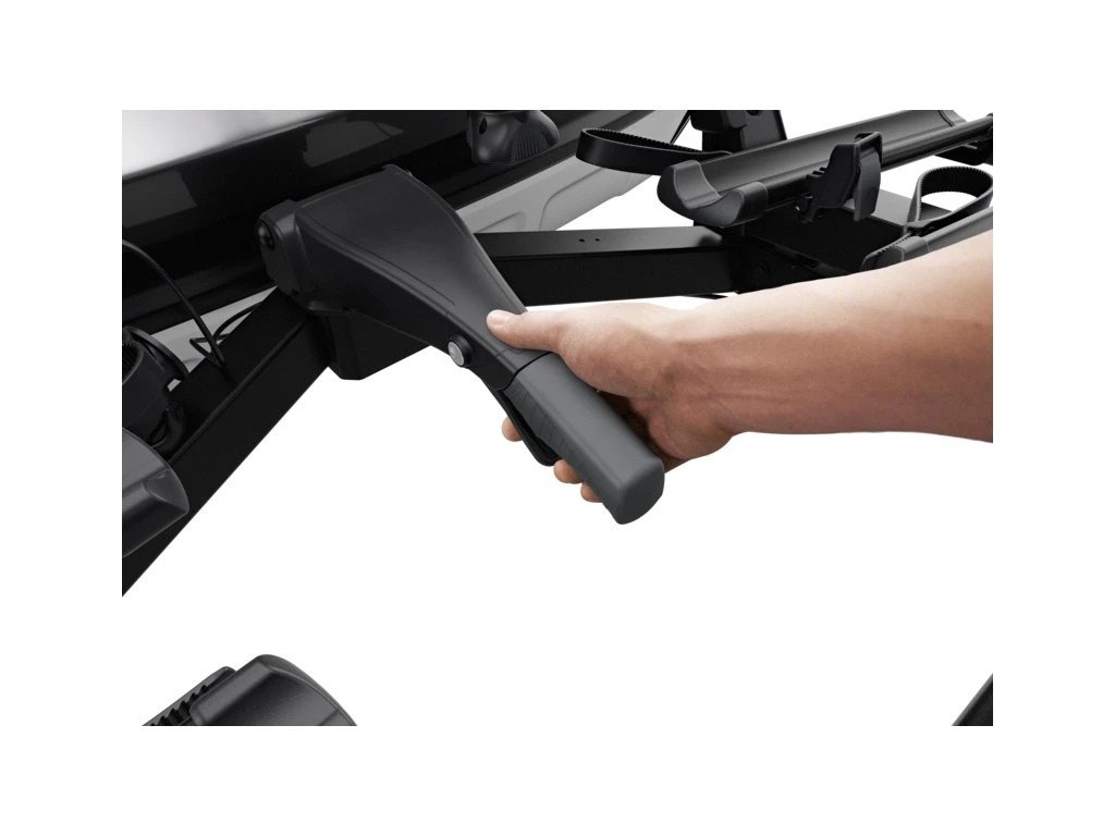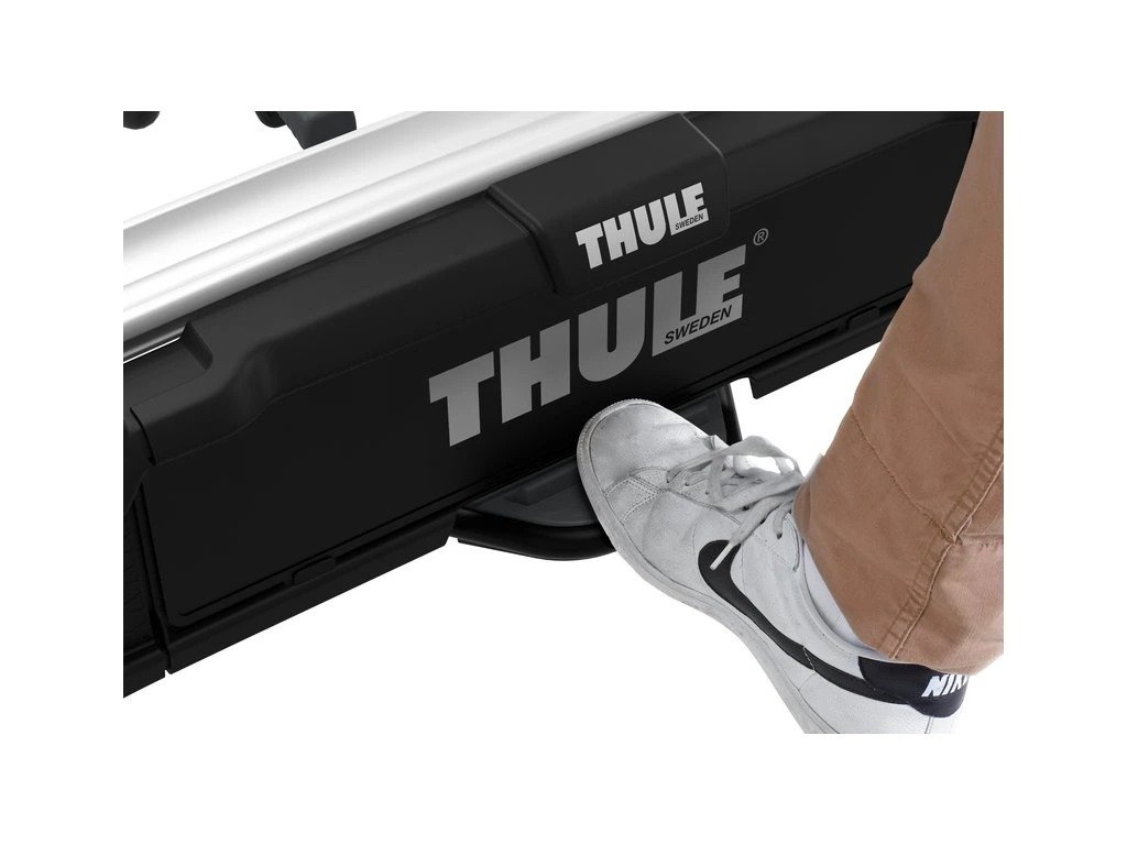 Výklopný mechanismus nosiče THULE VeloSpace se ovládá pomocí inteligentního nožního pedálu, což Vám ponechá volné ruce k přidržení jízdních kol během vyklápění. Dostanete se tak bezproblémově k zavazadlovému prostoru i s koly namontovanými na nosiči.