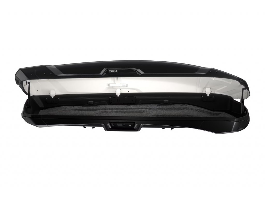 Thule Vector je možné otevírat z obou stran. To zaručuje nejen jednoduchý a snadný přístup k zavazadlům, ale rovněž lehčí montáž střešního boxu na střešní nosiče. Víko boxu je vyztuženo přídavnými výztuhami, takže otevírání a zavírání boxu je pohodlné a nenáročné.