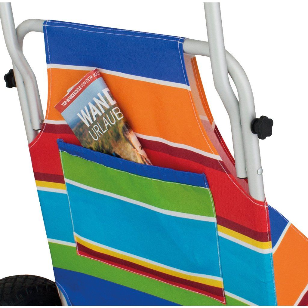 Tento skládací vozík usnadňuje přepravu ručníků, tašek, chladicích boxů i dalšího vybavení. Díky funkci 2v1 během několika sekund proměníte vozík v stabilní a pohodlné sedátko, takže nemusíte nosit samostatnou židli.